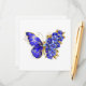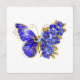 Bijoux, bleu, saphir, papillon aux fleurs pétillantes avec aile décorée de bleu, fleurs précieuses avec feuilles d'or sur arrière - plan blanc.