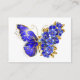 Bijoux, bleu, saphir, papillon aux fleurs pétillantes avec aile décorée de bleu, fleurs précieuses avec feuilles d'or sur arrière - plan blanc.