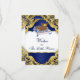Carte de voeux pour bébé avec un adorable prince bébé afro-américain sur un fond élégant et riche de bleu royal et d'or en spirale. Vous pouvez personnaliser cette carte de voeux pour bébé pour votre événement en ajoutant simplement vos détails dans le style de police et la couleur de votre choix. Vous pouvez également ajouter une couleur de fond et votre propre texte. Demandez à vos invités de les remplir et de les conserver comme souvenir pour bébé.