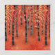 Un paysage moderne peint d'un bouleau ou d'une forêt de trembles en automne dans les tons riches de rouge, orange et jaune.