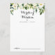 Ce blanc verdoyant et floral mariage des mots de sagesse carte conseil est parfait pour un mariage rustique. Le design est doté d'élégantes pivoines blanches aquarelles avec feuillage vert. Ces cartes sont parfaites pour un mariage, une douche nuptiale, un baby shower, une fête de remise de diplômes et plus encore. Personnalisez les cartes avec les noms de la mariée et du marié, des parents à devenir ou du diplômé.