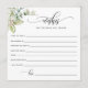 Elégante carte de conseil de mariage, avec des détails de verdure exquis et des éléments de calligraphie manuscrits modernes. Carte de voeux mariage et Fête des mariées car vous pouvez changer le message "Voeux pour la mariée et le marié" en "Voeux pour la mariée ou future" à l'aide de la zone de texte fournie. Verdure aquarelle dans un beau mélange de tons vert, bleu, beige et jaune. Une partie de notre collection "Elegant Greenery Eucalyptus Mariage and Events" avec une variété de produits de coordination disponibles.