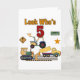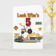 Les enfants qui aiment la construction et les gros camions vont adorer ce design de 5e anniversaire des véhicules de construction qui dit "Regardez qui est 5" sur les boutons de 5e anniversaire, T-shirts, cartes, autocollants, tasses, et plus encore.