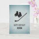 Celui-ci est pour les amateurs de hockey. Un arrière - plan à l'allure de glace crée un contraste saisissant avec le motif en métal peint des patins à glace et un bâton de hockey. Ajoutez n'importe quel nom et vous pouvez modifier le message d'accueil si ce n'est pas un anniversaire ou si vous voulez un texte unique. Votre propre message à l'intérieur est accompagné d'une version plus petite du graphique avant.