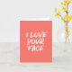 Une jolie et joyeuse carte d'anniversaire avec les mots doux I Love Your Face en blanc sur un arrière - plan corail rose. Dans le texte dit Joyeux Anniversaire, mais vous pouvez le modifier ou l'ajouter comme vous voulez!