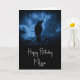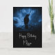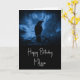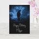 Carte d'anniversaire avec l'image d'un corbeau noir la nuit perché sur une branche d'arbre avec des runes au-dessus de laquelle on dit "corbeau noir". Moody et son atmosphère mystérieuse.