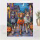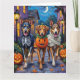 Les adorables Wolfhounds irlandais vêtus de costumes d'Halloween ludiques portent des seaux citrouilles tout en faisant des tours ou en traitant sous le ciel illuminé par la lune. Ce design festif met en valeur la haute, le cadre filé, les yeux doux et la personnalité noble de la race, capturant à merveille l’atmosphère éffrayante et amusante de la nuit d’Halloween. Une célébration majestueuse pour les amoureux de les chiens comme pour les fans d'Halloween.