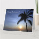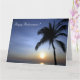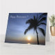 Des palmiers sur une plage au coucher du soleil. Customisez la carte pour n'importe quelle occasion.