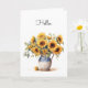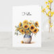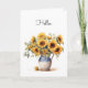 Un joli tournesol jaune vivant dans un imprimé botanique bleu et blanc pitcher est à l'avant de cette carte de voeux Hello. Le texte peut être modifié à votre salutation préférée. L'IA a aidé graphisme acheté à des fins commerciales. OEuvre d'art : ArtistesOasisArt
