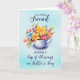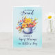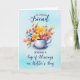Faites part de vos souhaits chaleureux à un ami chéri, cette fête des mères, grâce à une carte qui est à part égale douce et élégante. Une tasse à l'aquarelle remplie d'un joyeux bouquet se dresse contre un arrière - plan bleu doux, créant un look apaisant et stimulant. Le premier message, "A Cup of Joy on Mother’s Day", est idéal pour honorer un ami qui est une mère merveilleuse. À l'intérieur, un message bienveillant express gratitude et admiration pour tout ce qu'elle fait.