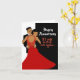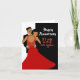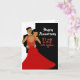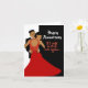 Carte d'anniversaire classique noir et rouge avec un fond noir et blanc avec une typographie blanche fantaisie et un couple afro-américain portant une robe et un smoking.