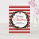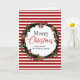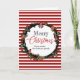 Carte Couronne de houx à rayures rouges de fête Joyeux N