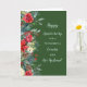 Joyeuse carte d'anniversaire mariage pour la cousine et son mari avec des fleurs d'aquarelle rustique d'hiver en vert foncé, et verset coeur.
