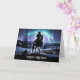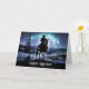 Season's greetings card with a silhouetted cowboy on his horse with northern lights in the background. A cool country western card.