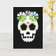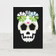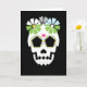 Cette carte blanche est parfaite pour tout collectionneur de crânes ou célébrateur de Dia de los Muertos. Le design simple et audacieux rend ce crâne (calavera) plus amusant que effrayant. Idéal aussi pour Halloween !
