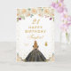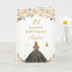 Cette carte d'anniversaire élégante et glamour peut être personnalisée avec un nom ou un titre comme fille, petite-fille, nièce, ami etc. Le design présente une belle princesse aux cheveux blonds et à la peau claire dans une robe de boule noire. Le texte combine écriture manuscrite et polices sans serif modernes pour un look élégant et sophistiqué. Les compositions florales, les papillons et les confettis d'or créent un mélange parfait de rustique et de chic. Graphiques par www.etsy.com/uk/shop/SunflowerDayLove