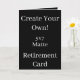 Créez votre propre Retraite Noire 5x7 Matte Card est une toile vierge pour explorer votre créativité! Personnalisez facilement en ajoutant vos propres images, texte et couleurs arrière - plans. Ou changez le type ou la taille du papier, et créez votre propre carte de voeux personnalisée et des cadeaux personnalisés pour n'importe quelle occasion!