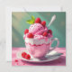 Un carte pour notes vierge pour écrire une note à vous ou à un ami. La couverture a une tasse de crème glacée framboise.