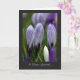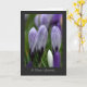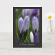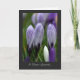 Série florale : L'image est de crocus violets et blancs variés au printemps, juste en train de se dérouler. Frais et représentant de nouveaux débuts, c'est une carte de sympathie noire bordée avec une note positive.