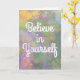 Croyez en vous-même carte pour montrer l'encouragement et le soutien à quelqu'un qui a une maladie ou qui traverse une période difficile ou qui fait face à un défi. Les mots sont en écriture sur un arrière - plan abstrait peint en couleur. Le texte intérieur peut être modifié.