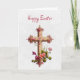 Carte Croix en bois élégante avec fleurs roses Pâques