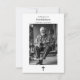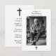 Une carte commémorative qui peut être personnalisée avec la photo d'un être cher. Il y a une croix noire des deux côtés et un poème sentimental au dos sur le fait d'être dans les bras de Dieu. Celles-ci sont agréables à mettre lors des funérailles ou des rassemblements de célébration de la vie pour que les proches les prennent. Cela a un filtre noir et blanc de sorte que toute photo que vous téléchargez sera en noir et blanc.
