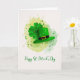 Carte simple de la Saint-Patrick avec des trèfles et un chapeau de lutin dessinés dans un style aquarelle gribouillé et esquissé avec des éclaboussures de "peinture" ; le faux fond semble être du papier aquarelle.