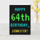 Ce simple, design de carte de salutation d'anniversaire d'amusement comporte un message comme le "JOYEUX soixante-quatrième ANNIVERSAIRE, JENNIFER !". Il comporte également un amusement, sembler pixelated réminiscent de l'aspect des jeux d'ordinateur vintages ou classiques des années 1980 et du début des années 1990. Le nom sur l'avant et le message sur l'intérieur peuvent être personnalisés. Il pourrait être envoyé ou donné à quelqu'un qui célèbre leur soixante quatrièmes anniversaires, et qui a plaisir à jouer les jeux vidéo vintages. [~Z0000099]