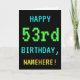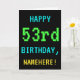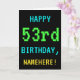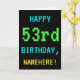 Ce simple, design de carte de salutation d'anniversaire d'amusement comporte un message comme le "JOYEUX cinquante-troisième ANNIVERSAIRE, NAMEHERE !". Il comporte également un amusement, sembler pixelated réminiscent de l'aspect de rétros ou classiques jeux vidéo des années 1980 et du début des années 1990. Le nom sur l'avant et le message sur l'intérieur peuvent être customisés. Il pourrait être envoyé ou donné à quelqu'un qui célèbre leur troisième anniversaire cinquante, et qui a plaisir à jouer les jeux d'ordinateur classiques. [~Z0000099]