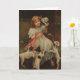 L'illustration dépeignant une jeune fille s'asseyant dans une chaise et tenant un chaton timide sur son épaule en tant que trois chiots à ses pieds sont intensément intéressée à jouer avec le chaton. L'illustration est par Arthur John Elsley (1860-1952) qui étaient célèbres pour ses peintures des enfants et de leurs animaux familiers. La carte est intérieur vide pour votre propre message.