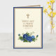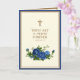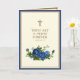 Célébrez l'anniversaire de la prêtrise avec cette belle image catholique traditionnelle d'un crucifix doré avec des roses bleues et un verset des Écritures. Sur le côté gauche de la carte se trouve le poème de Jean-Baptiste Henri Lacordaire, O.P. (1802-1861)