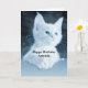 Carte d'anniversaire avec une adorable photo d'un chaton blanc aux cheveux courts aux yeux bleu vif. En partant au loin. Des pattes croisées à la mode chatte typique.