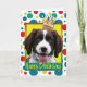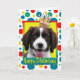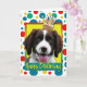 Célébrez un anniversaire avec cette carte de voeux pour chien espagnol Springer anglais fantaisiste. Avec un cupcake équilibré sur sa tête, ce design ne manquera pas d'apporter un sourire et des rires ! BTW, Cette conception a plusieurs versions, avec différentes couleurs arrière - plans. Il y a aussi une invitation à une version Party.