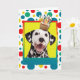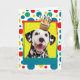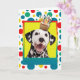 Célébrez un anniversaire avec cette carte de voeux fantastique pour chien dalmate. Avec un cupcake équilibré sur sa tête, ce design ne manquera pas d'apporter un sourire et des rires ! BTW, Cette conception a plusieurs versions, avec différentes couleurs arrière - plans. Il y a aussi une invitation à une version Party.