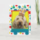 Célébrez un anniversaire avec cette carte de voeux de chien GoldenDoodle fantasque. Avec un cupcake équilibré sur sa tête, ce design ne manquera pas d'apporter un sourire et des rires ! BTW, Cette conception a plusieurs versions, avec différentes couleurs arrière - plans. Il y a aussi une invitation à une version Party.