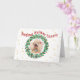 Send warm holiday wishes with this customizable Christmas card featuring a cheerful photo inside a festive wreath design. Perfect for families, friends, coworkers, or pet lovers, this card allows you to add your own photo, personalize the holiday message, and include your family name for a unique touch. Whether you are sending season’s greetings across the miles or sharing joy locally, this personalized card is a thoughtful way to spread Christmas cheer.