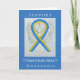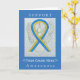 L'ange gardien salue ou la carte de note présente l'image d'un tableau d'ange ruban bleu et jaune de conscience. Le ruban de sensibilisation bleu et jaune signifie le soutien aux enfants atteints du syndrome de Down. La carte indique "Soutien<Your Cause Here>Sensibilisation". Ajoutez vos propres mots ou message optionnels à la carte de voeux pour les cartes pour notes de sensibilisation à l'art de l'ange personnalisé ! Vous pouvez également supprimer le texte d'une carte d'ange d'art uniquement. Les cartes de voeux d'art de peinture d'ange bleu et jaune de conscience peuvent être customisées de messages personnalisés pour faire une grande prise de conscience cause des cartes d'art pour les collecteurs de fonds, les cadeaux de sensibilisation, ou d'autres événements spéciaux. Donnez cette carte d'art ange comme un cadeau de ruban de conscience pour toute occasion.