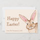This Easter card features Destei's watercolor illustration of a brown bunny peeking from the corner on a beige background. The front includes two personalizable text areas, one currently reading "Happy Easter!" and the other ideal for adding a name. Perfect for spring and Easter, the design brings a festive woodland-inspired touch to your holiday greetings and makes every card feel personal and special.