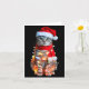 Carte Cute Christmas Tabby Cat In Lights Santa Hat For K