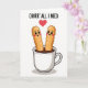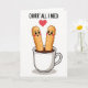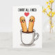 This greeting card shows two golden-brown churros with ridged texture sitting close together in a white mug filled with dark hot chocolate. Each churro has wide dark eyes, rosy cheeks, and a small smile, and they look happy and cozy as they soak in the chocolate. A red heart floats above them, centered near the top, to underline the sweet, caring mood. The background is plain white with simple linework, keeping the focus on the pair and their warm treat ❤️🍫. The chocolate is a deep brown that stands out against the lighter churros and the bright white cup. Near the bottom, the card reads “CHURR’ ALL I NEED” in clear, easy-to-read block letters, making the message feel fun and affectionate 💌. It’s a cute way to say someone is your favorite comfort and your favorite company. Hope it helps you share your Valentine’s Day sentiments with someone you care about.