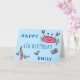 Jolie carte d'anniversaire de Crabe Rose Sea Animals Girl. Ce design est fourni avec des animaux de mer roses mignons dessin et joyeux texte d'anniversaire. Ajoutez votre nom, votre âge et votre message à l'intérieur.