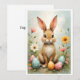 Carte Cute Easter Bunny Eggs Flowers Flat