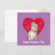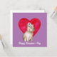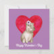 Carte de vœux carrée Saint-Valentin mignonne avec un hippopotame aquarelle adorable, un grand cœur et un texte personnalisable sur fond violet