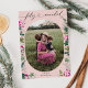 Cette carte de vacances moderne comprend votre photo préférée avec des botaniques d'hiver élégantes en rose et un script de coeur de calligraphie. Pour effectuer des modifications anticipées, sélectionnez Personnaliser -> Modifier à l'aide de l'outil de conception. La couleur de l'avant de la carte peut être modifiée en modifiant la couleur de l'élément Oval.