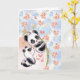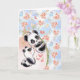 Une illustration adorable et très mignonne avec deux panda ours entourés de coeurs de sucre de canne épars sur des bâtons avec des rubans attachés à eux un joli coeur bleu pastel. Le panda est l'escalade d'un poteau de bambou en arche et l'autre se penche pour lui donner un baiser. La carte est idéale pour les célébrations de la Saint-Valentin, pour les fêtes et les rassemblements romantiques, comme des invitations à des fêtes de fiançailles ou comme une carte pour un mariage ou du couple nuptial de dire merci aux invités pour avoir assisté à leur jour de mariage. Personnalisez l'intérieur pour convenir à votre occasion spéciale.