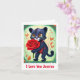 L'IA mignonne a généré l'image d'une panthère, qui tient une grande rose rouge dans ses pattes et les mots Je t'aime. Vous pouvez facilement personnaliser cette carte avec le nom de votre chéri.