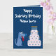 Carte de voeux d'anniversaire de la sobriété bleue avec un dessin animé mignon illustrant un chien et un gâteau d'anniversaire. Les couleurs textuelles et arrière - plans sont personnalisables selon vos besoins - il suffit de cliquer sur le bouton "Customiser" - il y a beaucoup de polices et de couleurs à choisir. Vous pouvez déplacer, supprimer ou redimensionner n'importe quel élément de conception de cette carte.) - et des cadeaux avec des messages spirituels/inspirants. Toutes les illustrations créées par un alcoolique en récupération.