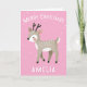 Carte Cute Pink Reindeer Kid`s Name Merry Christmas