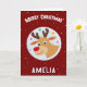 Carte Cute Red Reindeer Kid`s Name Merry Christmas