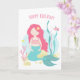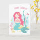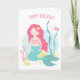 Carte Cute Sirène Rose et Menthe Anniversaire pour Fi
